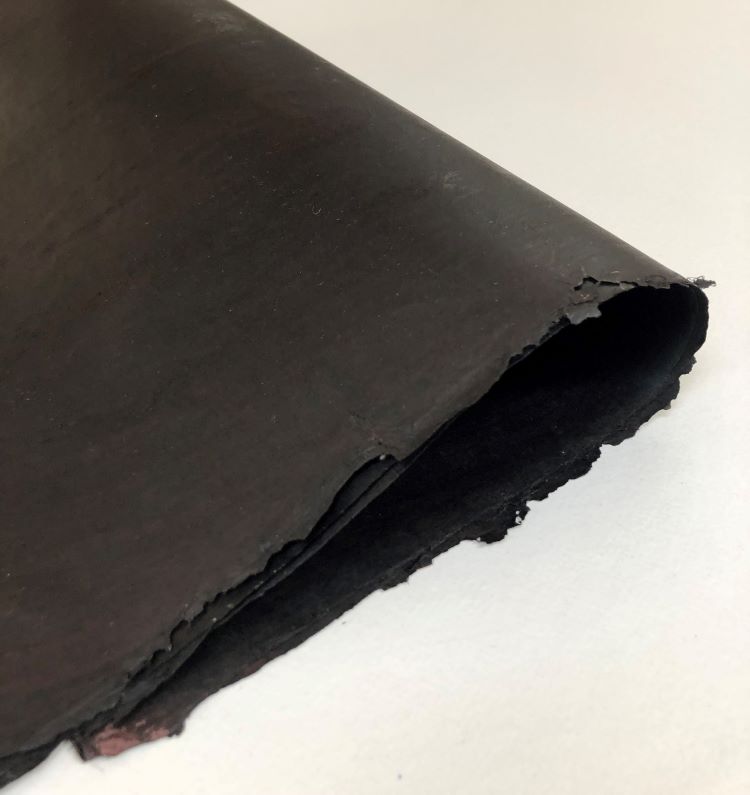 Traditional Islamic paper from North India made from sunn hemp fibre. Handmade on a chapri, a grass stem screen. Sheets are dried on a plaster wall and surface sized with wheat starch. The colour is applied by brush. Catechu comes from the root of the areca palm. After colouring the paper is burnished by rubbing on a curved block of wood with a smooth stone. Vegan.